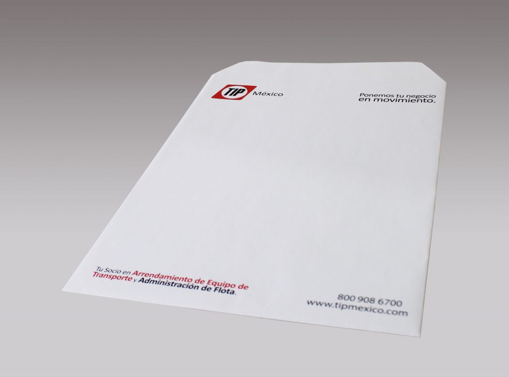 Papelería Corporativa Folder Porta documentos Proyecto realizado para Tip México. Realizado en sulfatada. Barniz UV a selección. Sobre Carta Proyecto realizado para Tip México. Realizado en papel bond. Con solapa sin engomar. Hojas personalizadas Carta y media carta Proyecto realizado para Sanborn. Realizado en papel bond. Planilla Tarjetas presentación Realizado en cartulina opalina. Sellado y retractilado. Tenemos el mejor servicio en la industria Contáctanos Ahora